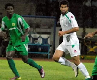 في الصورة اللاعب عبد الحق الطلحاوي بقميص الرجاء في إحدى مباريات عصبة الابطال الإفريقية.